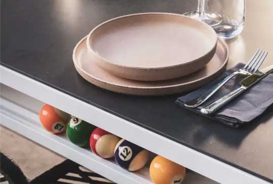 Biljardne in namiznoteniške mize iz sveta Play-Style je mogoče preoblikovati v jedilne mize, zato združujejo uporabno s prijetnim – druženje ob igri in obroku si lahko naravno sledita.
